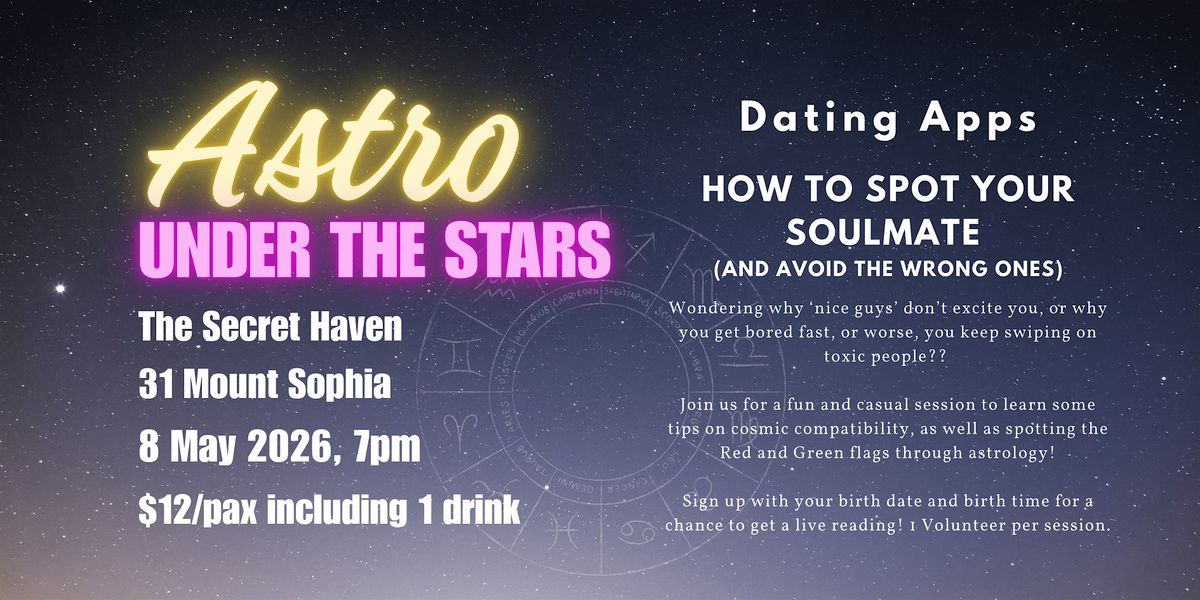 Wondering why ‘nice guys’ don’t excite you, or why you get bored fast, or worse, you keep swiping on toxic people?? Join us with a trained Astrologer to explore your cosmic compatibilities with the people you're seeing, or planning to see.