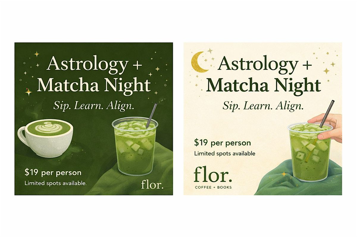 Join us for a cozy evening of astrology, connection, and mindful conversation—while enjoying hot or iced matcha together.