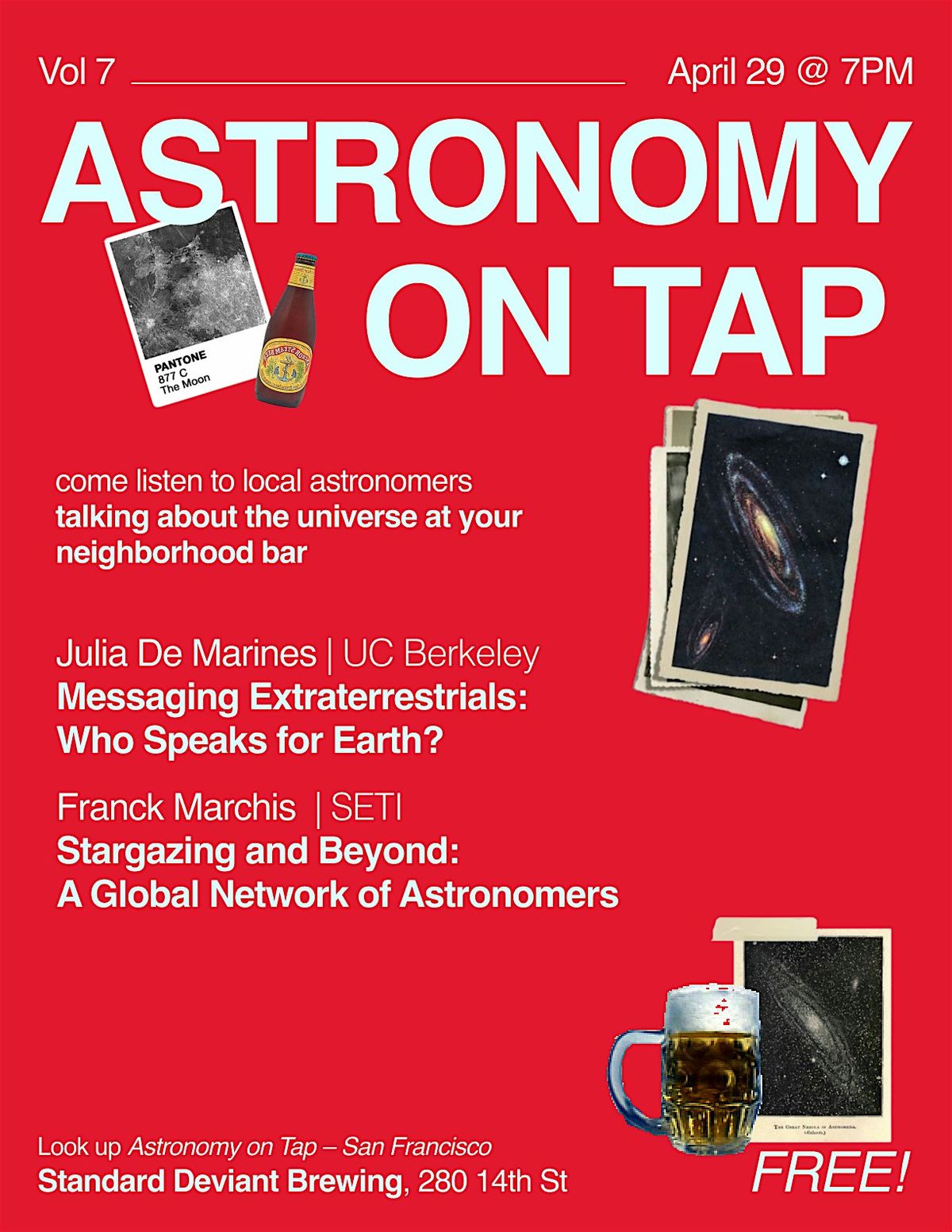 Astronomy on Tap takes place in cities all over the world. This is a revival of the San Francisco chapter, which regularly hosted events before the pandemic. We're excited to be back on a monthly basis!