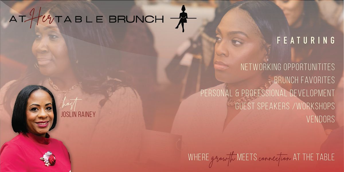 At Her Table Brunch is where personal & professional growth meets meaningful connections. Guests will enjoy inspiring speakers, delicious brunch favorites. a mimosa bar, music, and moments of self reflection- all designed to inspire elevation.