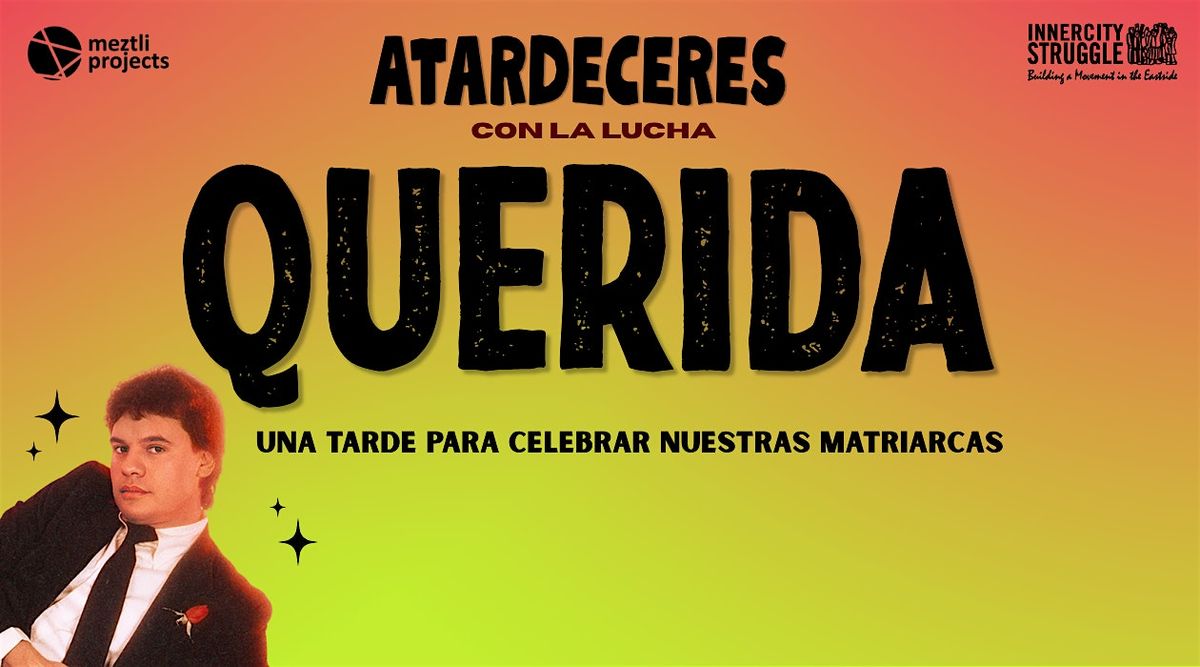 Querida is a Juan Gabriel Atardeceres Con La Lucha inspired theme for to celebrate the matriachs of the Eastside in collaboration with Meztli Projects. Bring your tias, moms, sisters, amigas and comunidad! We wil be having live tote bag printing, card making, bouquet making, food, photos and music.