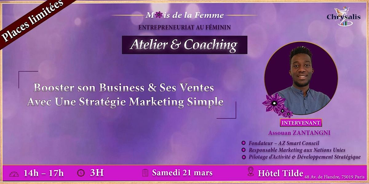 À l’occasion du Mois de la Femme, nous vous invitons à un atelier immersif, conçu pour vous aider à structurer une stratégie marketing simple et efficace afin de développer votre activité et augmenter vos ventes.