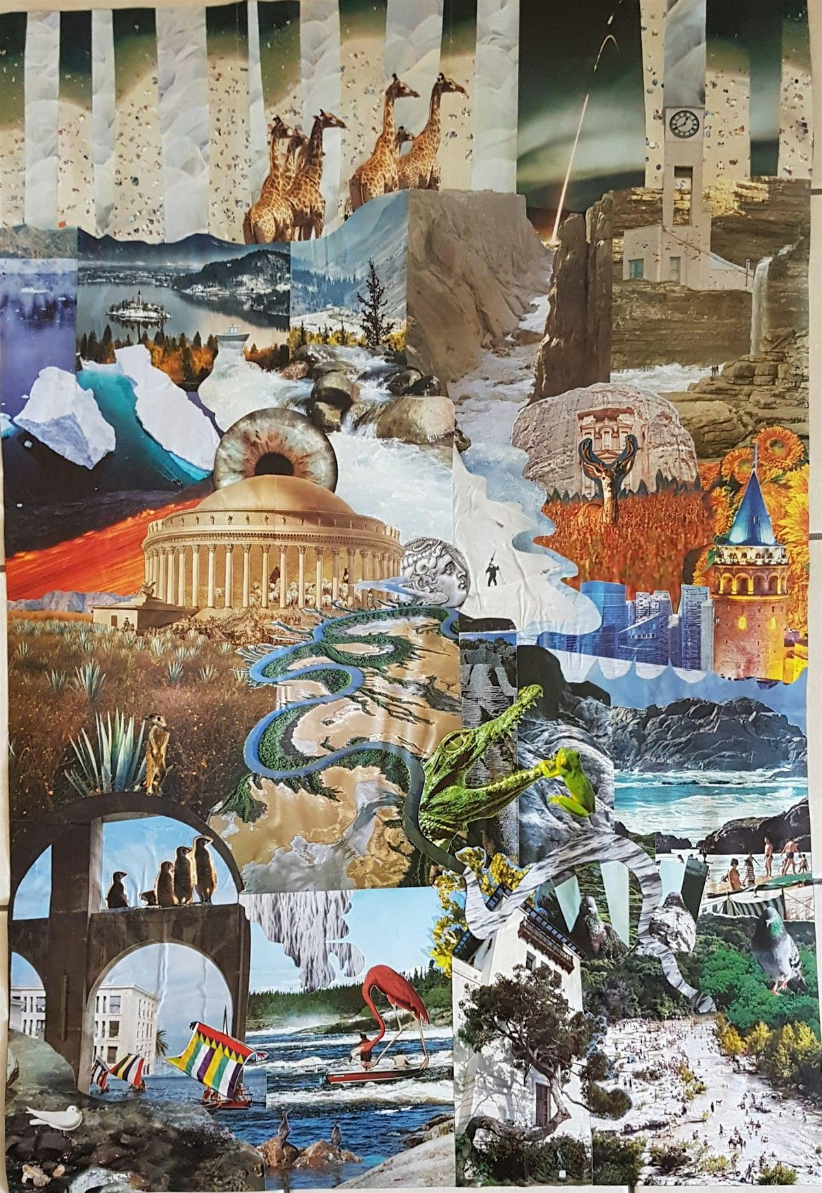 Ma pratique du collage s’inscrit dans une recherche de surgissement de sens. Deux images sorties au hasard vont se rencontrer sur ma table de travail et s’imposer comme allant ensemble, comme une évidence. De ce premier fil, je tire les suivants, une toile de correspondances entre images dont la provenance s’efface au fur et à mesure pour re-devenir de la matière brute à travailler. Le collage permet des jeux d’échelles et de perspectives étonnantes. L’assemblage de deux perspectives distinctes permettra de créer de nouveaux effets de profondeur.