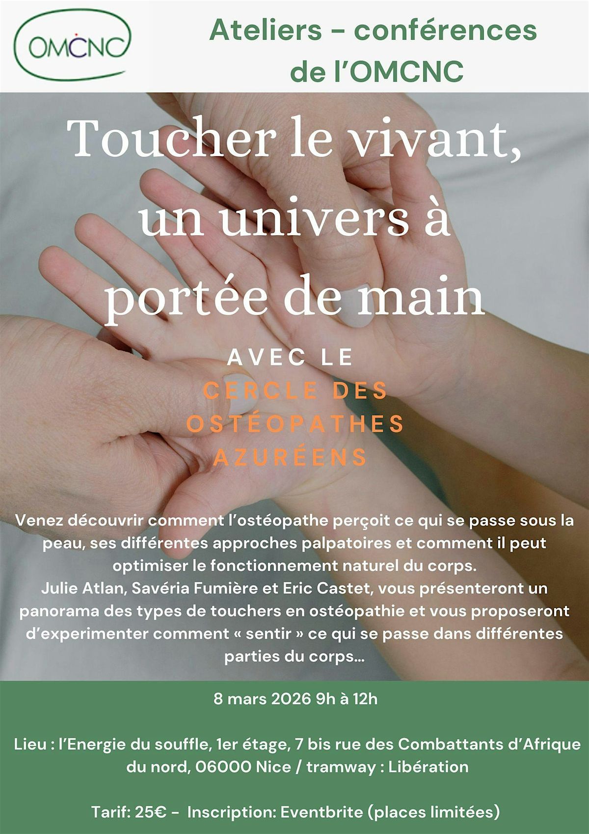 Cet atelier-conférence s’inscrit dans la mission de l’OMCNC (Observatoire des Médecines Complémentaires Non Conventionnelles) : rendre accessibles les approches intégratives et validées scientifiquement au grand public, dans une atmosphère conviviale, ouverte et bienveillante.