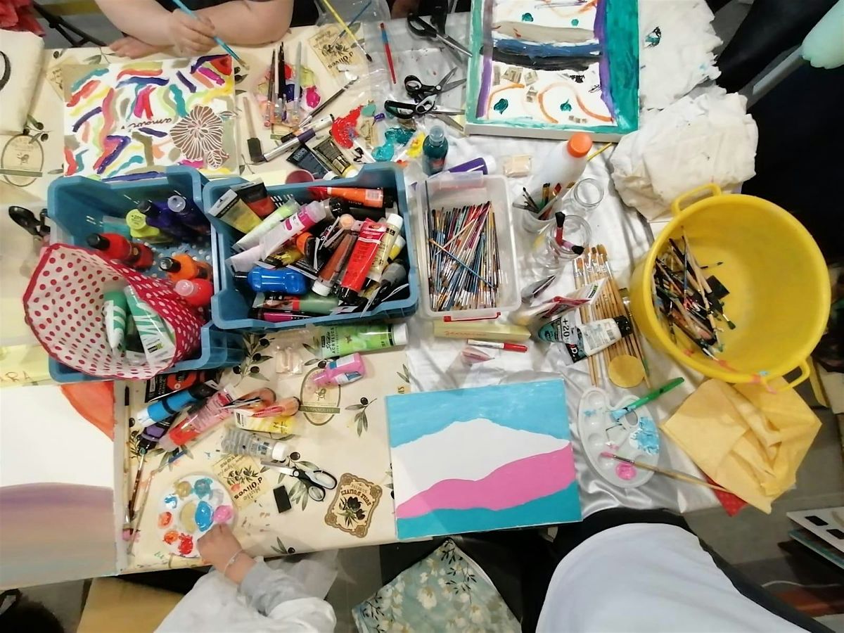 Venez exprimer votre créativité en choisissant des couleurs et des tissus à coller sur vos toiles originales.