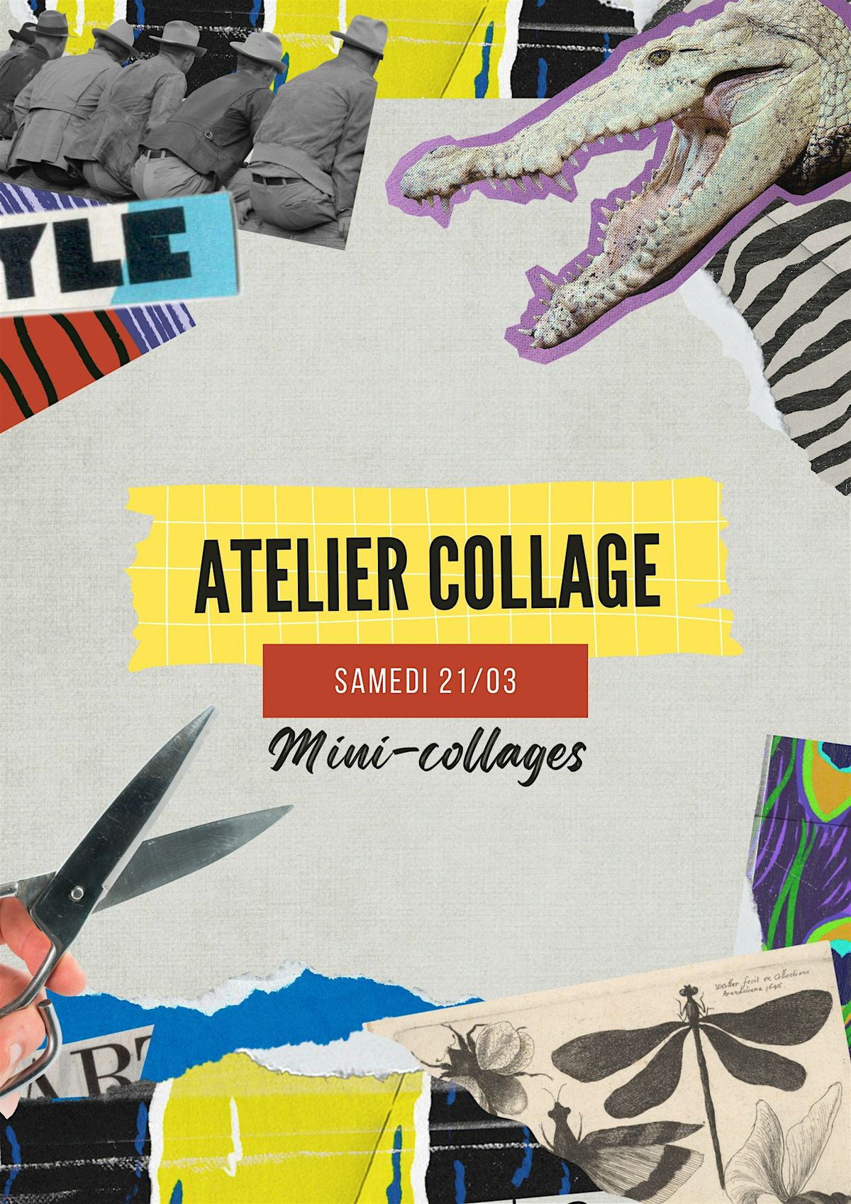 L’atelier mensuel de collage s’adresse aussi bien aux débutant·es qu’aux participant·es confirmé·es. Il permet d’explorer ou approfondir la pratique de collage sous un angle artistique et à travers d’une thématique inspirante.