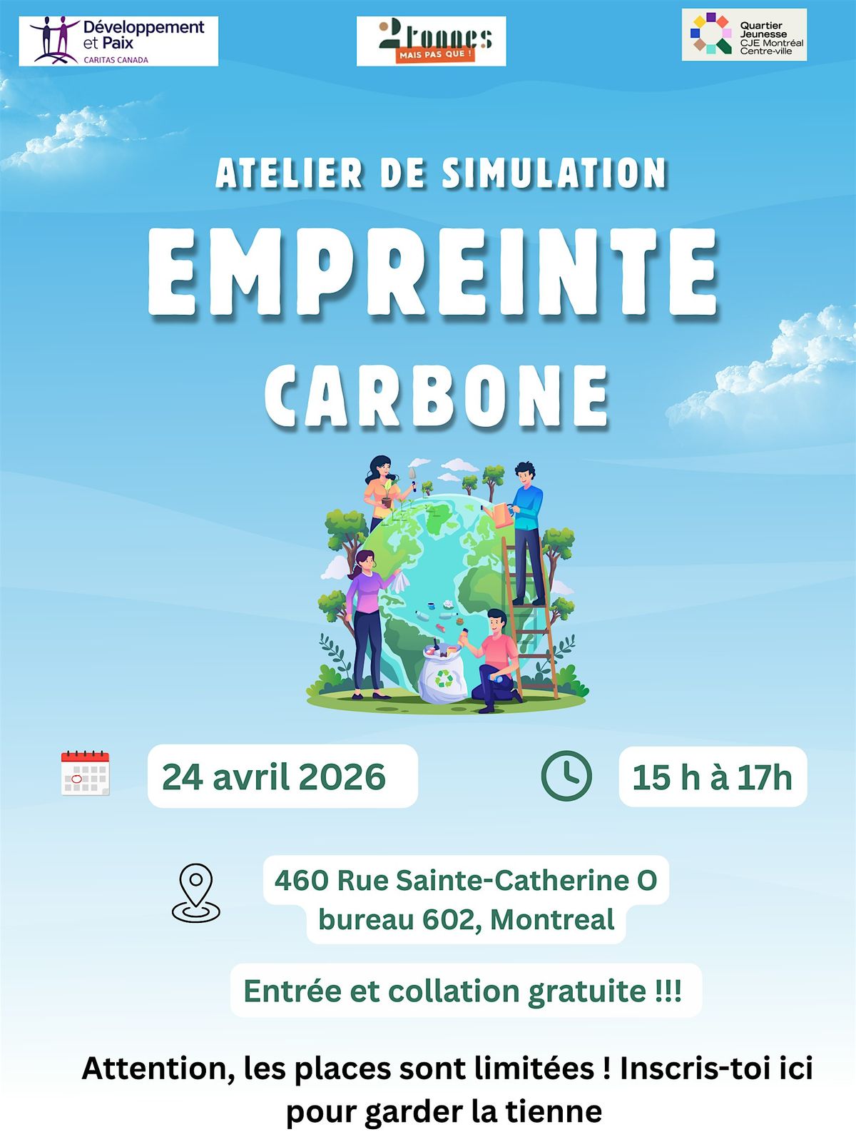 On t’invite à participer à un atelier interactif de simulation de l’empreinte carbone, une expérience immersive qui te plonge dans le futur pour mieux comprendre les enjeux climatiques d’aujourd’hui.