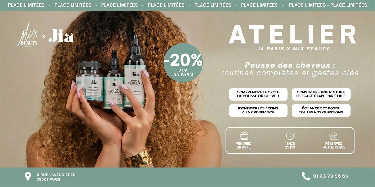 Viens découvrir une routine complète pour booster la pousse de tes cheveux ! On te partage les gestes clés à adopter au quotidien pour des cheveux plus longs et en pleine santé. Ce moment se passe en présentiel, idéal pour poser toutes tes questions et repartir avec plein de conseils pratiques. N’hésite pas, ta chevelure te dira merci !