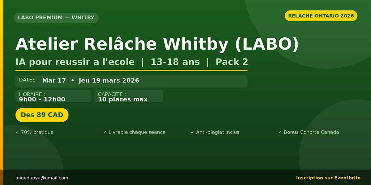 • Pass complet (2 ateliers) — 169 CAD ← Meilleure valeur (économisez 9 $)