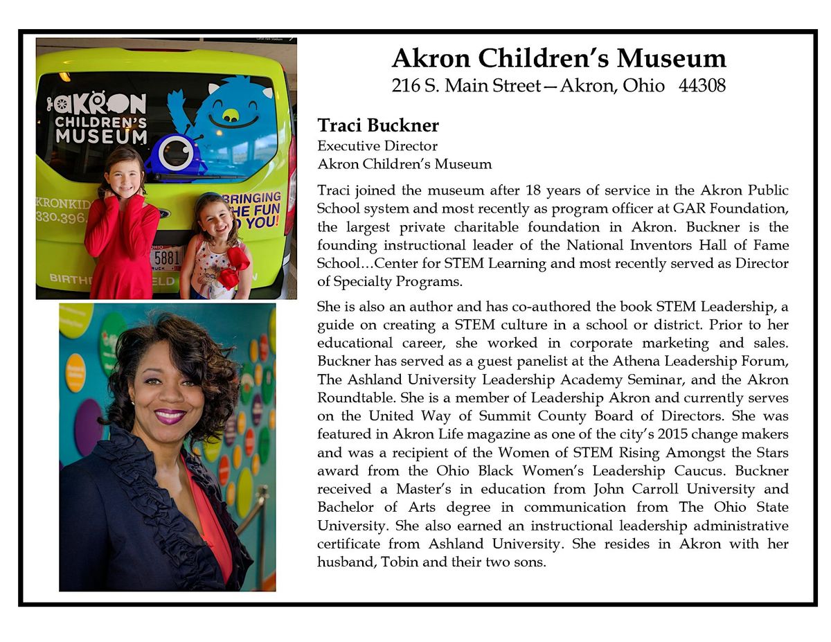 Join members and guests of ATHENA Akron for an after-hours event hosted by Traci Buckner, Executive Director, Akron Children's Museum.