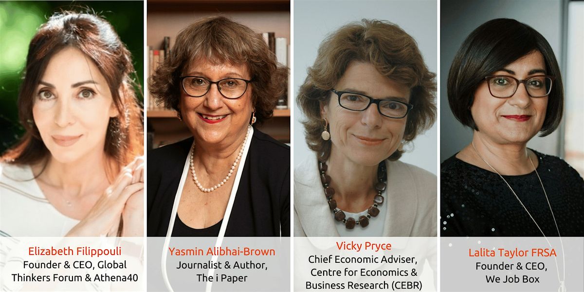 Speakers: Elizabeth Filippouli - Founder & CEO, GTF & Athena40; Yasmin Alibhai-Brown - Journalist & Author, The i Paper; Vicky Pryce - Chief Economic Adviser, Centre for Economics & Business Research (CEBR)
