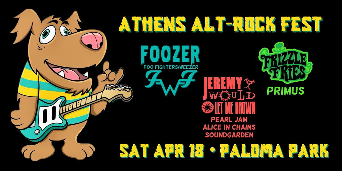 Aubrey Entertainment &Beartron Entertainment present Athens Alt-Rock Festival 2026—a loud, riff-heavy celebration of alternative rock’s greatest eras! Catch FOOZER (Weezer & Foo Fighters), Jeremy Would Let Me Drown (Pearl Jam, Alice in Chains & Soundgarden), and Frizzle Fries (Primus) tearing it up Saturday, April 18, 2026 at Paloma Park’s outdoor bier garden stage. Doors open at 3pm, music starts at 5pm. All ages welcome—bring the whole crew! Snag Early Bird tickets for $12 (through March 31), or grab advance, student, and family pack options. Kids 12 & under get in free with a parent or guardian. Don’t miss Athens’ alt-rock throwdown of the year 🤘