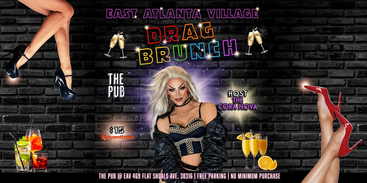 Welcome to ATL Drag Brunch at THE PUB @ EAV! Voted by Access Atlanta as the "Most Fabulous Drag Brunch in ATL". Get ready for an unforgetable time filled with amazing performances and seriously delicious food. Hosted by the hilarious Cora Nova. 2025 National Entertainer of The Year Finalist.