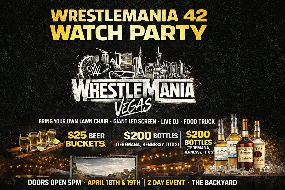 Join us at The Backyard for a 2-night outdoor WrestleMania experience on Friday, April 18th & Saturday, April 19th featuring a giant LED screen, live DJ, food truck, and a full watch party vibe made for real wrestling fans.