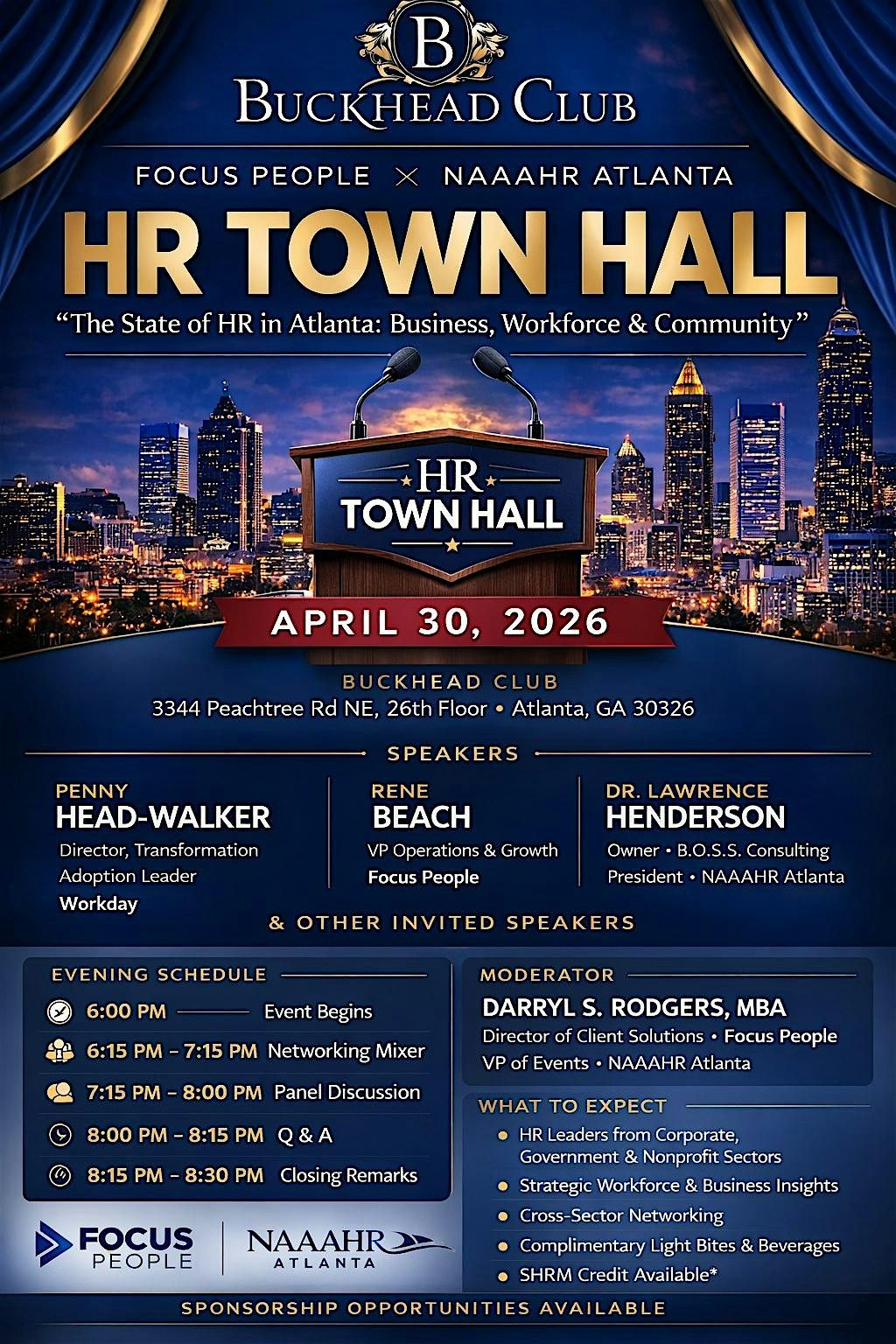 This invitation-only HR Town Hall brings together senior leaders across human resources, business, workforce development, and organizational leadership to discuss the evolving role of HR in shaping Atlanta’s economic and talent landscape.