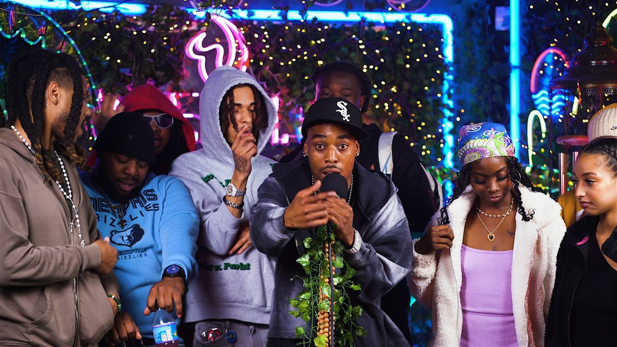 A full-song performance on a curated stage, filmed in a studio made for hip-hop and R&B visuals.