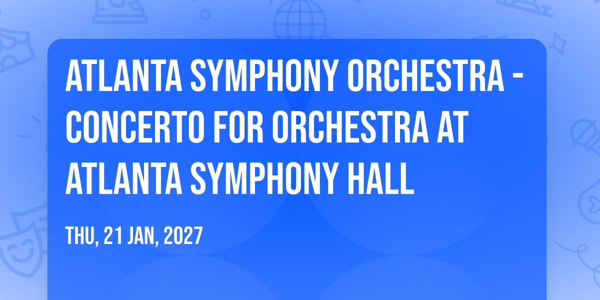 🎉 Welcome to Atlanta Symphony Orchestra - Concerto For Orchestra at Atlanta Symphony Hall, where dreams come alive and possibilities are endless! 🏛️ Join us at Atlanta Symphony Hall in the heart of Atlanta, GA for an event that defies expectations. 📅 On January 21st, 2027 at 08:00 PM, be part of something truly extraordinary as we bring together innovation, entertainment, and pure magic. ✨ Every aspect has been carefully designed to ensure an unforgettable experience for all our guests. Whether you're seeking adventure, inspiration, or simply a break from the ordinary, this event promises to deliver beyond your wildest dreams. 🎊 Prepare for a journey into the extraordinary!