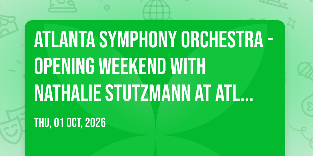 🌟 Step into a world of wonder at Atlanta Symphony Orchestra - Opening Weekend with Nathalie Stutzmann at Atlanta Symphony Hall, where extraordinary moments await! 🏛️ Located at Atlanta Symphony Hall in dynamic Atlanta, GA, this event will become the talk of the town. 📅 Join us on October 4th, 2026 at 03:00 PM for a celebration that defies the ordinary. ✨ This curated experience brings together the best of entertainment, culture, and community spirit. Every detail has been thoughtfully planned to ensure an unforgettable experience for all our guests. 🎯 Take advantage of this opportunity to be part of something special. 🎊 Early registration is recommended as space is limited!