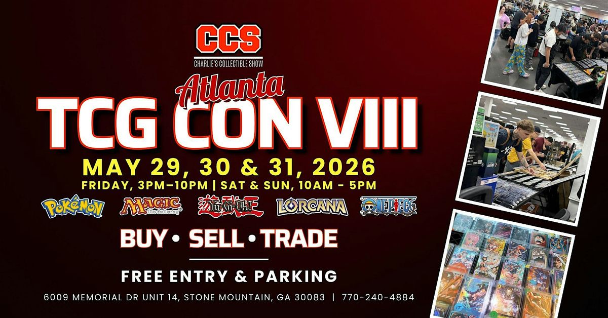After an incredible run, Atlanta TCG Con VIII is back for another full 3-day experience, bringing even more cards, collectors, and community together under one roof.