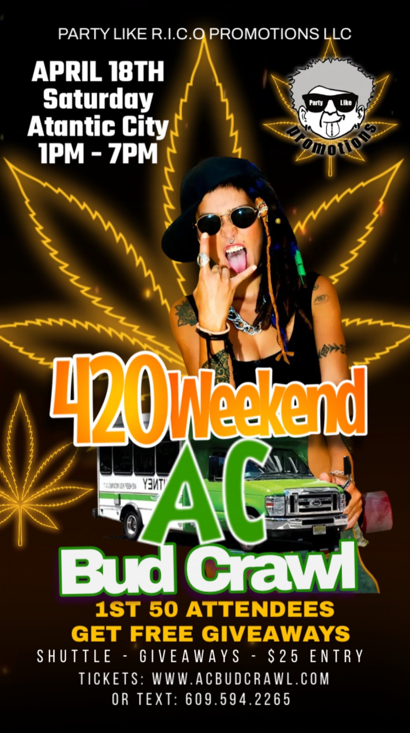 Secure your seat for PLR Promotions first shuttle party event of 2026 and celebrate 420 weekend in style! Join us for the AC Bud Crawl in Atlantic City, where attendees will enjoy a guided tour of various venues connected to the holiday vibe—all while riding in a party shuttle. There will be discounts and activities for attendees to enjoy!!