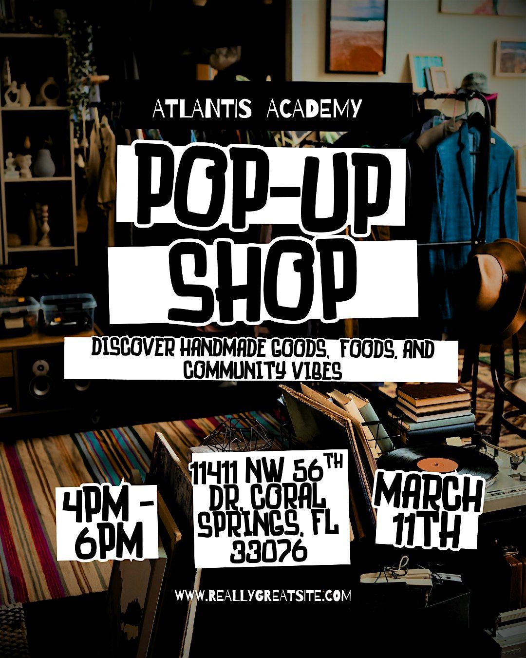 Get ready to explore the coolest finds at the Atlantis Academy Pop Up Shop! Join us in person for a fun day filled with unique items, great vibes, and a chance to connect with awesome people. Whether you're hunting for treasures or just want to hang out, this event is the place to be. Don't miss out on the excitement and surprises waiting for you!