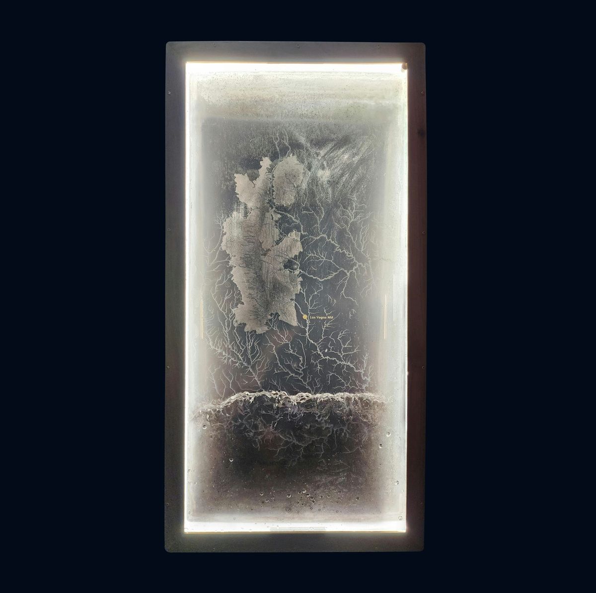 Artist and UNM Art Professor Andrea Polli's work uses lenticular technology, in which lenses are used to produce highly luminous images made of textured acrylic with an illusion of depth, or that change or move when viewed from different angles.