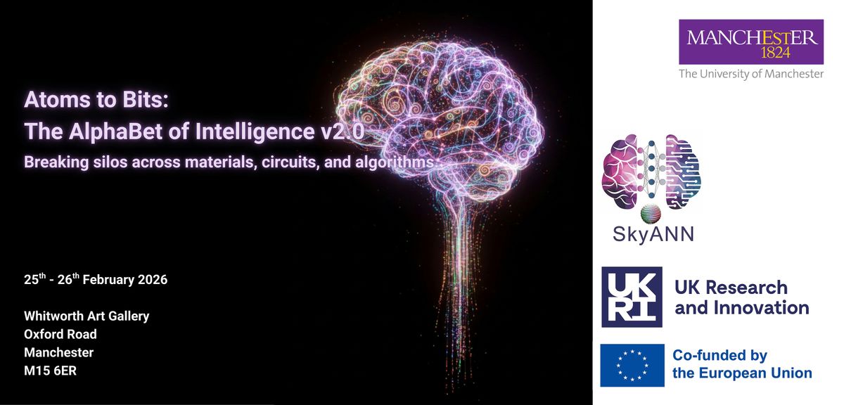Welcome to our 2-day Brain-Inspired Computing Workshop, a University of Manchester organised event dedicated to connecting the worlds of emerging materials research, memristive device engineering, and the development of hybrid memristive-CMOS neuromorphic computing systems. By focusing on technological applications, we aim to spark conversations and collaborations that can help shape the next generation of intelligent computing.