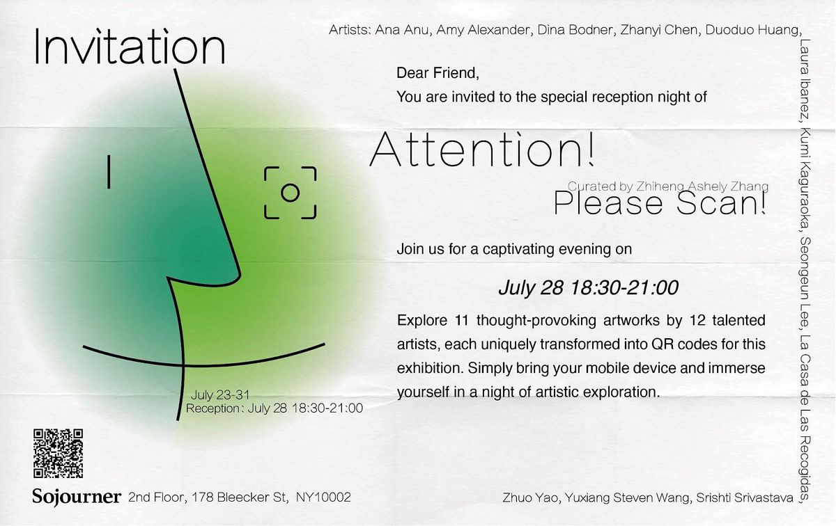 Featured Artists: Ana Anu, Amy Alexander, Dina Boder, Zhanyi Chen, Duoduo Huang, Laura Ibanez, Kumi Kaguraoka, Seongeun Lee, La Casa de Las Recogidas, Srishti Srivastava, Yuxiang Steven Wang, Zhuo Yao