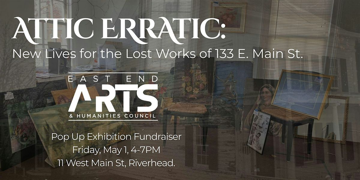 The attic of East End Arts Council’s Fine Art Gallery at 133 E. Main St. is full of artwork left behind, donated, and ultimately forgotten over the last several decades. As we prepare to vacate the space, we have sorted, separated, researched, and cataloged nearly 100 pieces. And so an opportunity for our artist community to have some fun flexing your creative spirit and good humor to save and upcycle these lost works emerged...All showcased pieces will be put up for sale to support the move into EEAC’s new temporary gallery space.