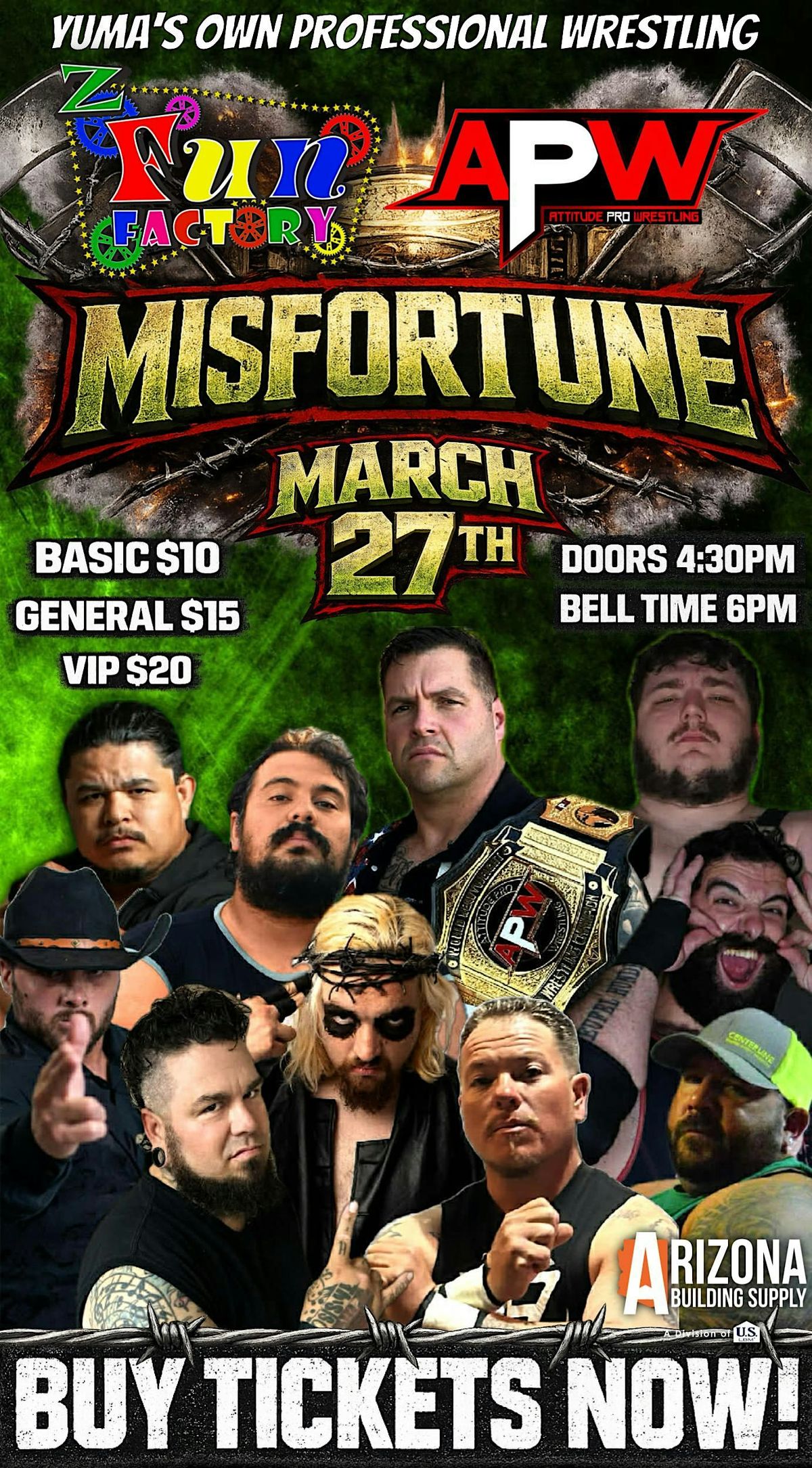 Expect an electric crowd, larger-than-life personalities, and nonstop entertainment from bell to bell. Bring the family, bring your friends, and be part of the action as APW takes over Z Fun Factory once again!