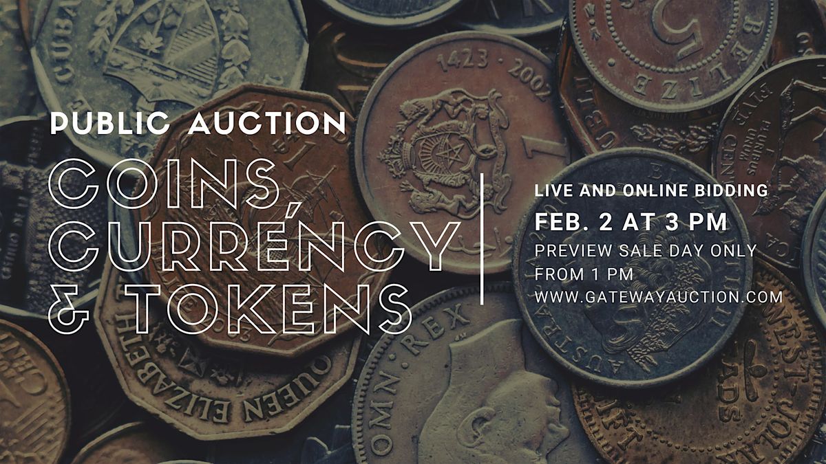 Hey there! Join us live or online for an exciting Auction Event featuring a cool collection of Coins, Currency, and Tokens. Whether you're a collector or just curious, this is the place to discover unique items and maybe snag a treasure or two. Don’t miss out on the fun – come see what's up for grabs!