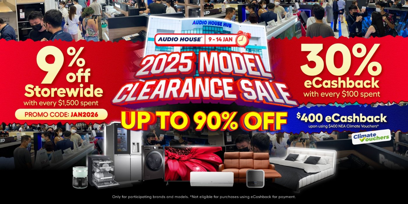 The Audio House 2025 Model Clearance Sale blazes into action from 9 to 14 January 2026 for just 6 days! Shoppers can look forward to attractive deals across a wide range of home electronics, making it a timely opportunity to upgrade existing appliances or pick up new ones at a bargain.
