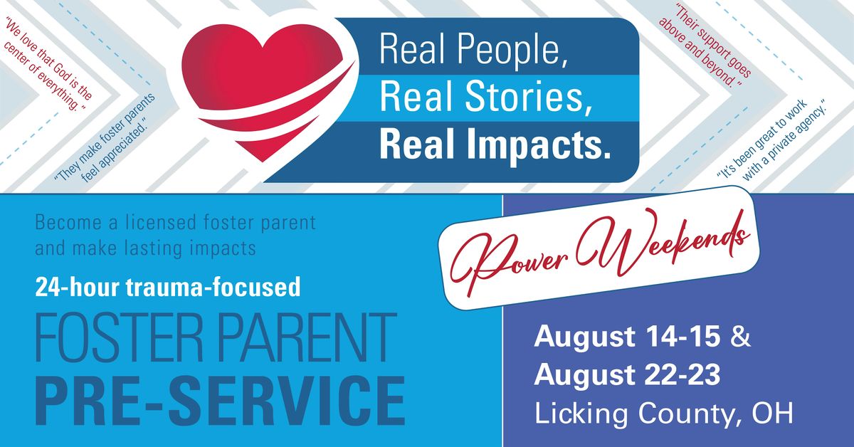 Encourage Foster Care provides 24-hour trauma-focused training to become a licensed foster parent during two power weekends (must attend all 4 sessions):