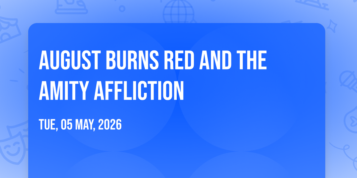 📍 Location: 44.9841, -93.2792🌟 Journey into wonder at August Burns Red and The Amity Affliction, where extraordinary experiences await around every corner! 🏛️ Set against the backdrop of Fillmore Minneapolis in dynamic Minneapolis, MN, this event promises to exceed all expectations. 📅 Join us on May 5th, 2026 at 11:30 PM for a celebration that combines innovation, entertainment, and community spirit in perfect harmony. ✨ There will be an atmosphere where memories are made and stories come alive, ensuring every guest experiences something truly remarkable. 🎊 This is more than just an event; it's a journey into the extraordinary!