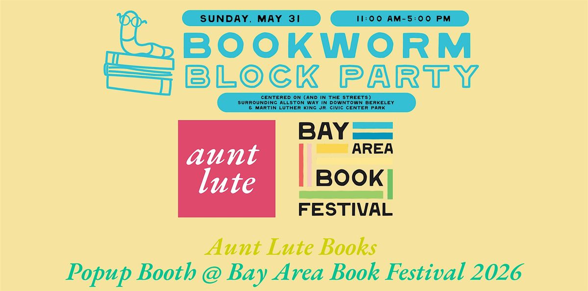 Visit Aunt Lute Books at the Bay Area Book Festival 2026 outdoor fair – the Bookworm Block Party – a lively, immersive experience jam-packed with fun and exploration for festival attendees of all ages and interests.