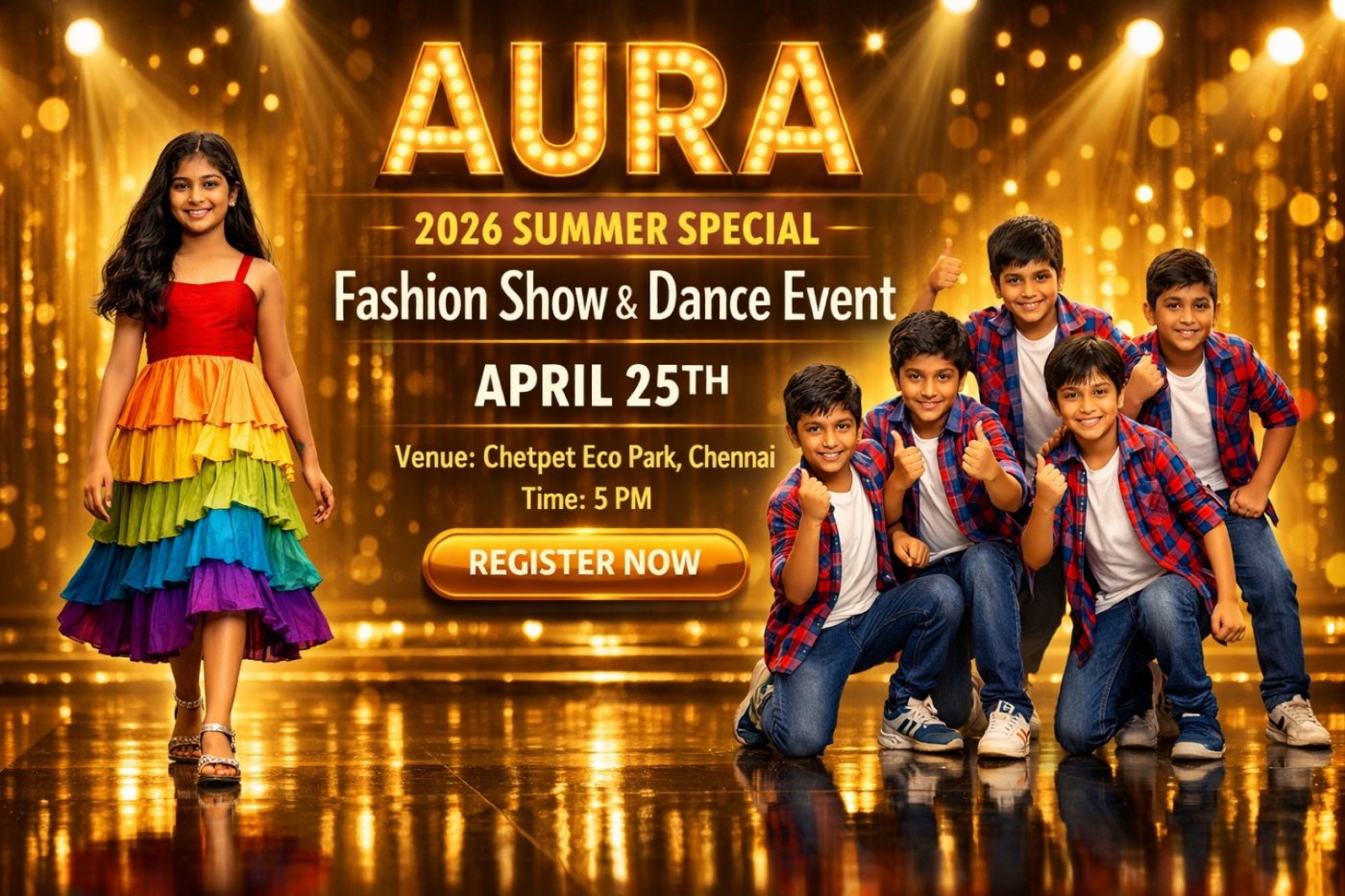 AURA is a premium kids talent showcase in Chennai designed to help children build confidence, express creativity, and shine on stage.