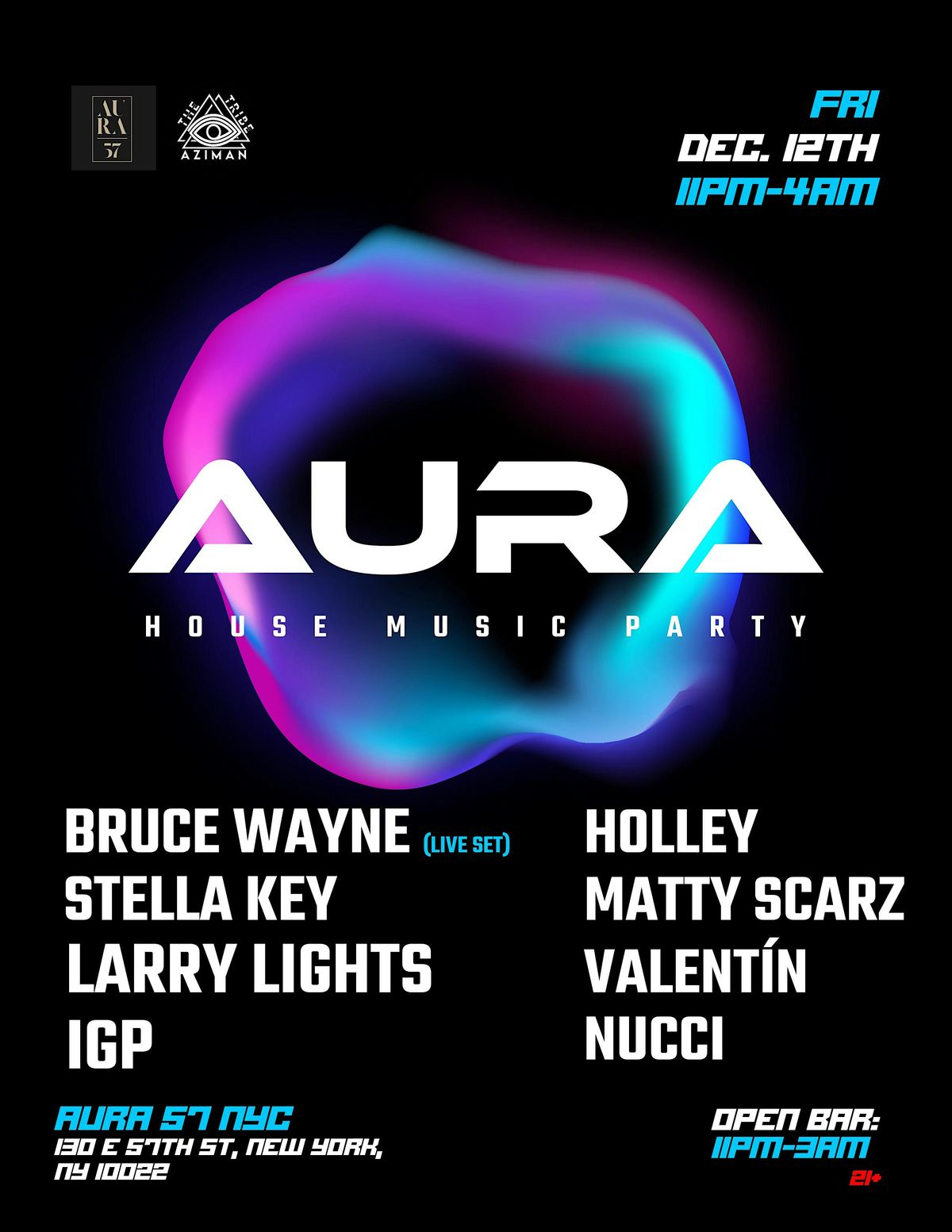 Aura57 is a cocktail-forward lounge and event space located in the heart of Midtown Manhattan. Known for its expertly crafted drinks, intimate design, high resolution screens, state of the art sound system, and flexible private rooms, Aura57 blends high-end nightlife with personalized service.