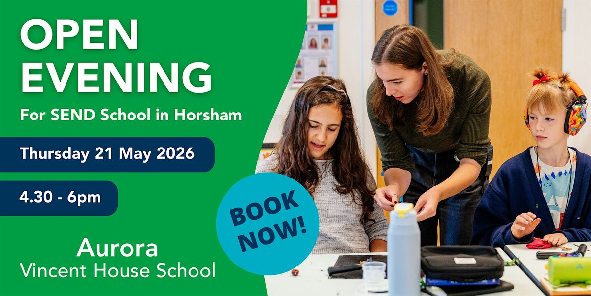 If you'd like to find out more, we’re holding an Open Evening for parents and carers at Aurora Vincent House (31 North Parade, Horsham RH12 2DA) on Thursday, 21 May 2026.