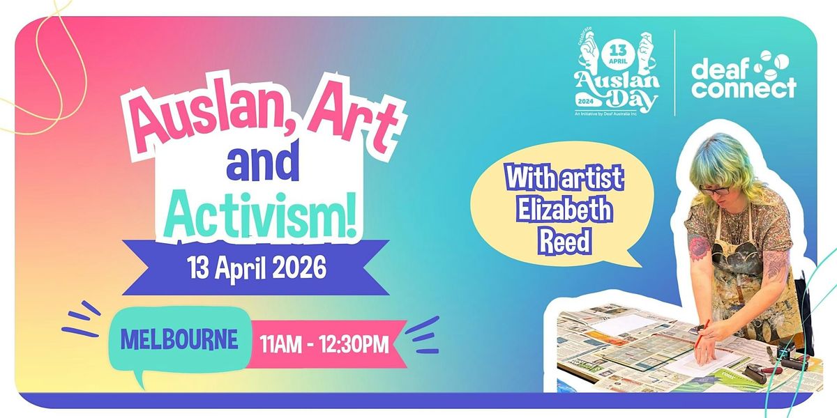 Join us on Monday, 13 April 2026, for a powerful and creative workshop in Elizabeth Reed’s studio. Together, we’ll create zines and posters to share across the Deaf community, using drawing, collage, and bold ideas.