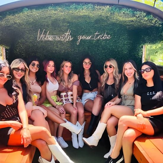 📱 Smartphone tickets ⚡ Instant access to your tickets ⏳ Duration: 2h 30m 👉 Experience available in English Hop on the wildest ride through Austin with 19 of your closest friends! Dive into the heart of the city's vibrant street art scene, sip on refreshing mimosas, and dance under the open sky on our unique roofless party bus. Capture picture-perfect moments with a professional photoshoot at each mural, and take a mid-tour break at the chic Freddo ATX for a caffeine fix or bubbly toast. With top-notch tunes, dazzling downtown views, and an unforgettable vibe, this experience is a must-do. Get your tickets for Austin Murals & Mimosas Roofless Party Bus Tour and Photoshoot! Highlights 🚌 Party through downtown Austin on a unique roofless bus with stunning views. 📸 Free photoshoot at Austin’s most Insta-worthy murals to make your memories last. 🍹 Stop for delicious mimosas at the picture-perfect Freddo ATX cafe. What's included? ✔️ Dance Floor to bring your moves to life. ✔️ Cooler to keep your beverages chilled. ✔️ LED Lighting to set the perfect ambiance. ✔️ Experienced Driver for a safe and smooth ride. ✔️ World Class Sound System to elevate your listening experience. Itinerary South Congress Avenue East Austin Freddo ATX Downtown Austin Rainey Street Additional Information 🐕 Service animals are welcome. 🚆 Public transportation options are readily accessible nearby. 👟 This experience is suitable for all physical fitness levels. Why choose Fever? ✔️ Millions of users book every month. ✔️ The best prices and availability at all times. ✔️ Thousands of unique experiences. ✔️ Verified user reviews. ✔️ 24/7 customer service. Experience supplied by TRIBE Bus Tours All ticket sales are final and cannot be refunded, exchanged, or otherwise modified. Click here to check out the T&Cs .