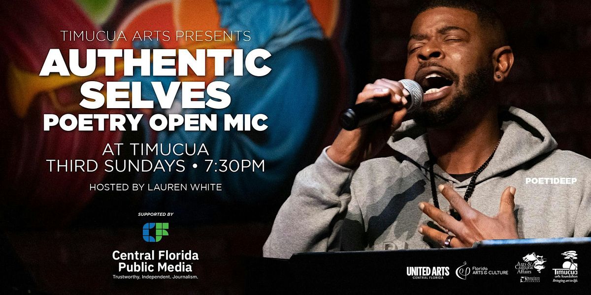 Timucua's monthly poetry and open mic series, Authentic Selves. Held the third Sunday of every month at Timucua. Hosted by Lauren White.