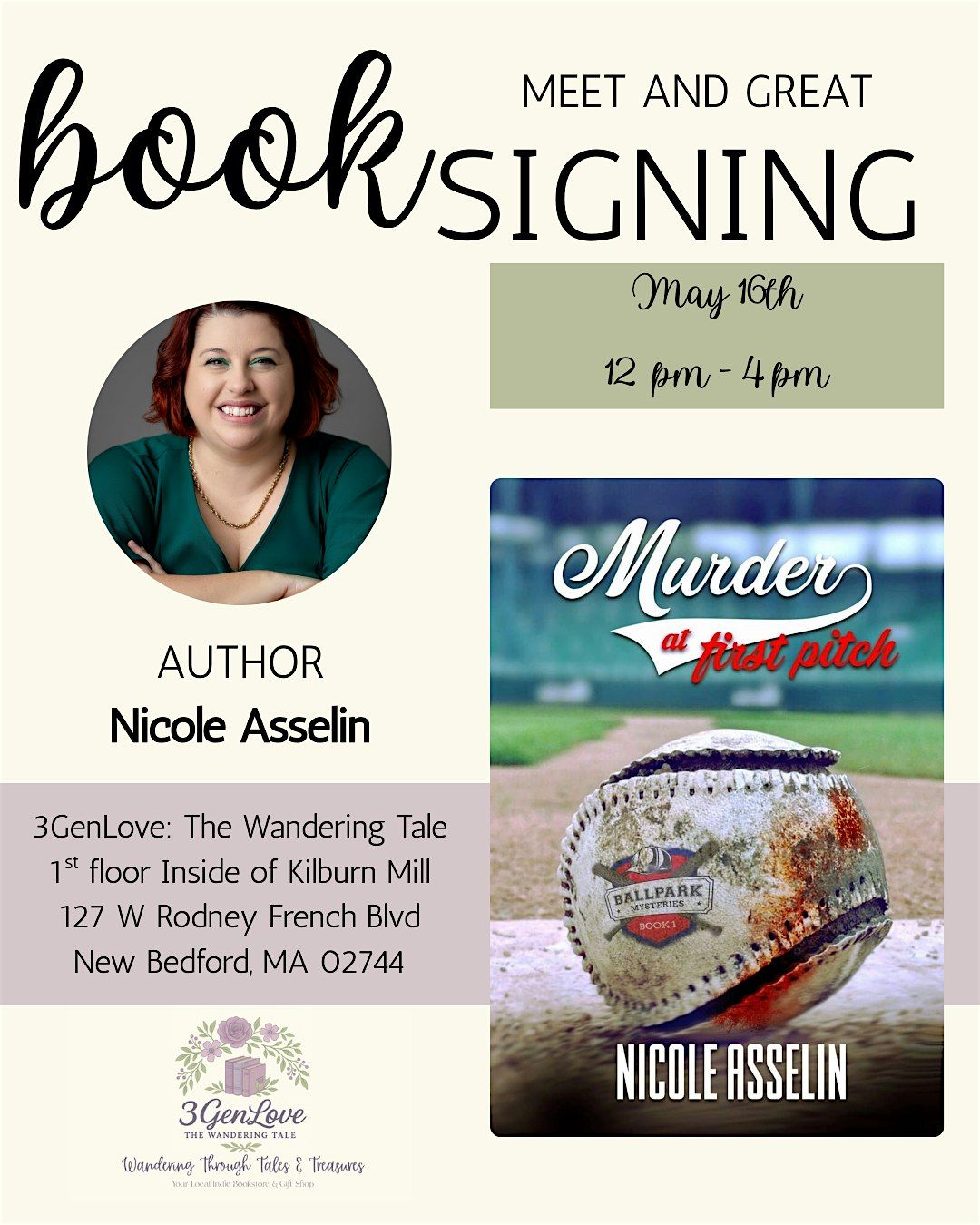 Join us on Saturday, May 16th from 12-4pm for a special meet & greet with Nicole Asselin right inside 3GenLove: The Wandering Tale at Kilburn Mill!