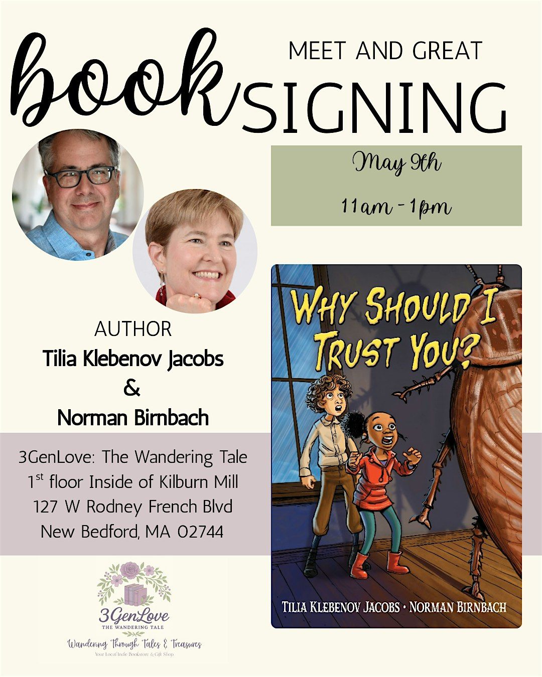 Join us on Saturday, May 9th from 11-1pm for a special meet & greet with Tilia & Norman right inside 3GenLove: The Wandering Tale at Kilburn Mill!