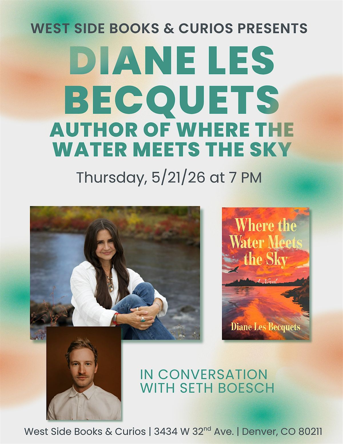 Join us in conversation with Diane Les Becquets as we discuss her upcoming novel Where the Water Meets the Sky. She will be in conversation with her son - and bookstore regular - Seth Boesch.
