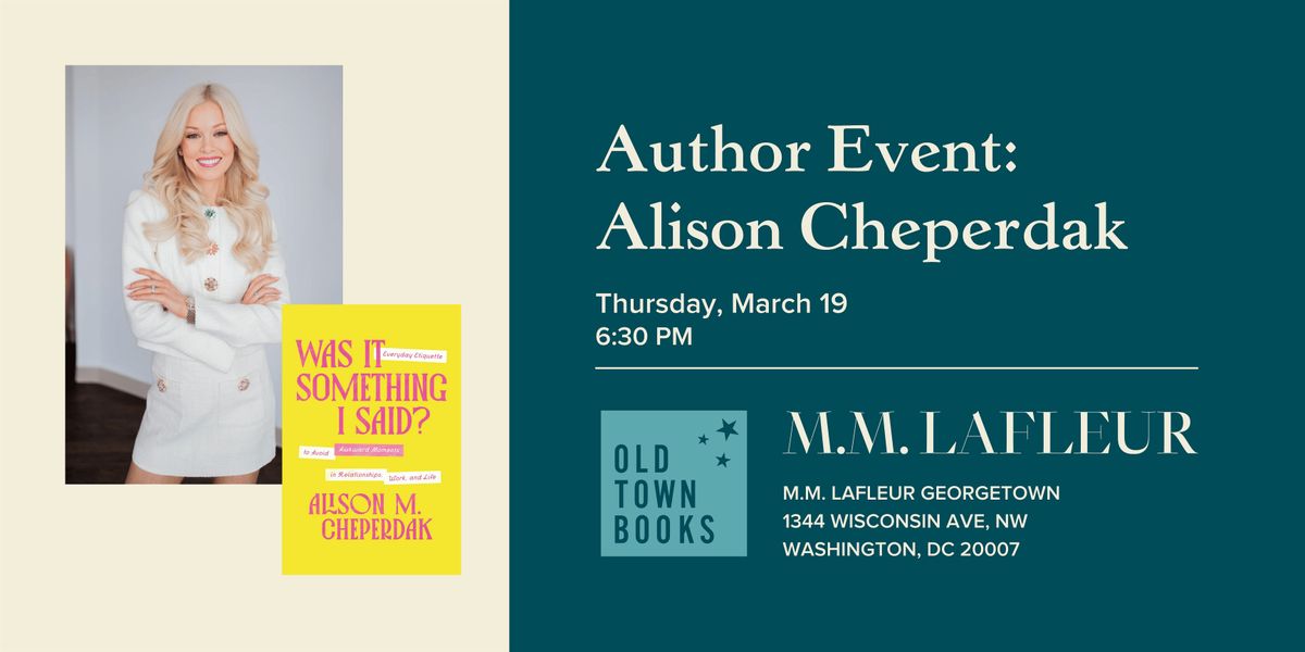 Join us as we partner with M.M.LaFleur to host etiquette expert and local author Alison Cheperdak to celebrate the release of her new book, WAS IT SOMETHING I SAID?, on Thursday, March 19, at M.M.LaFleur’s Georgetown showroom.