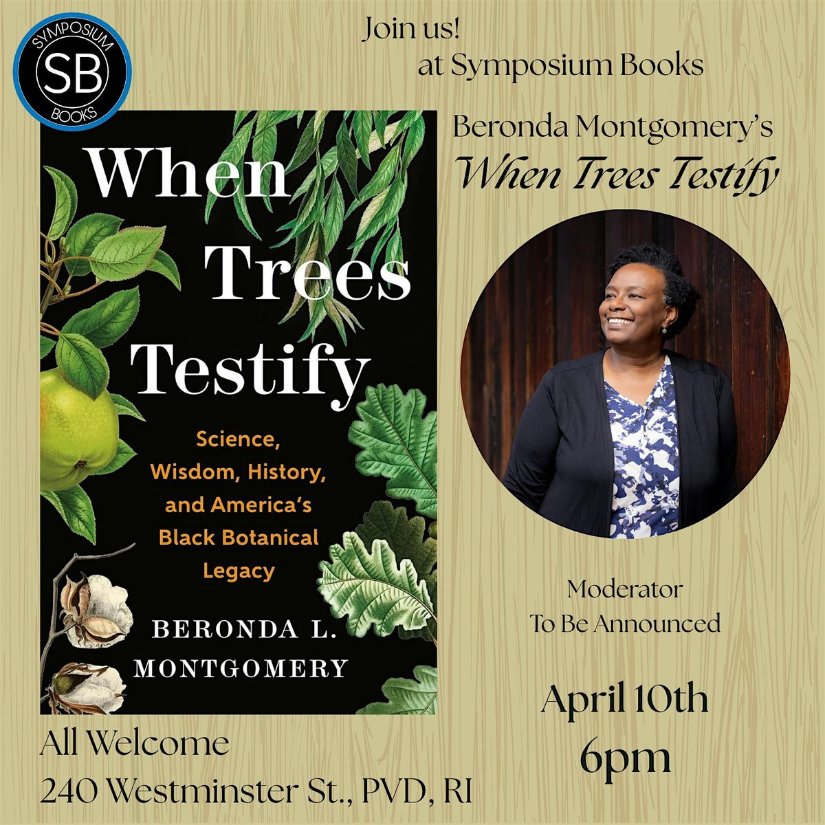 Join us on Friday, April 10th as we host Beronda Montgomery to discuss her latest book, When Trees Testify: Science, Wisdom, History, and America’s Black Botanical Legacy. Signed copies of the book will be available for purchase.