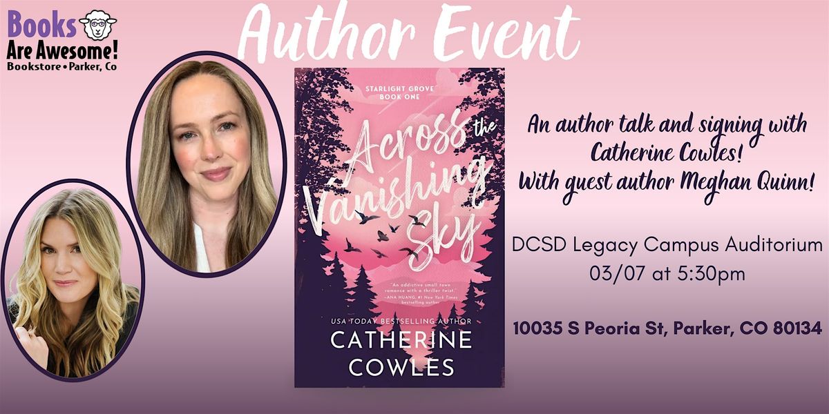 BAA is thrilled to host Catherine Cowles (Sparrow Falls Series and All the Missing Pieces ) for the release of her newest book Across the Vanishing Sky! Plus, Meghan Quinn (Bridesmaid for Hire Series and Just for the Cameras) will be hosting a no doubt, hilarious Q&A with a signing to follow.