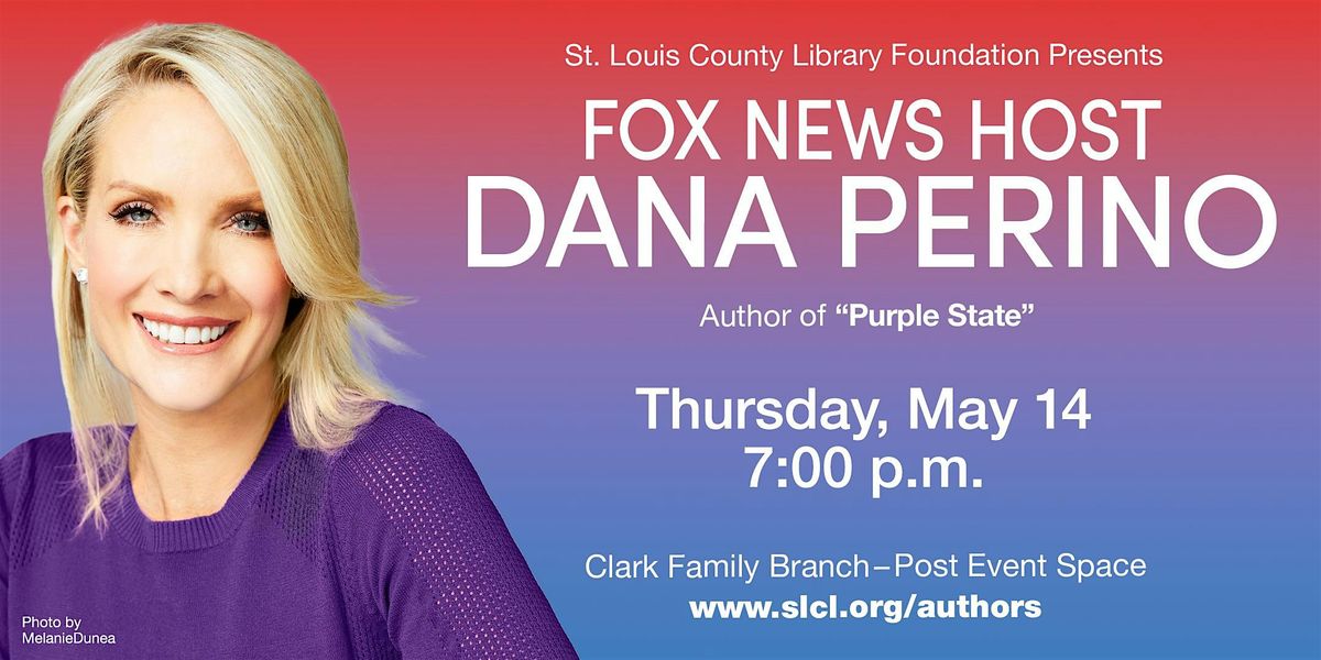 Top image description: Photo of Dana Perino. Text: St. Louis County Library Foundation presents Fox News Host Dana Perino. Author of "Purple State." Thursday, May 14, 7:00 p.m. Clark Family Branch - Post Event Space. www.slcl.org/authors.