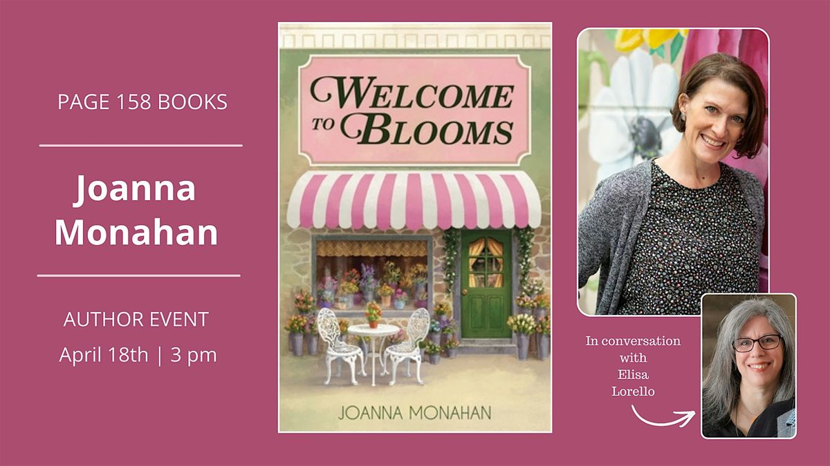 Page 158 Books is excited to welcome back author Joanna Monahan to celebrate the release of her book, Welcome to Blooms. Joanna will be in conversation with Elisa Lorello, author of All of You.