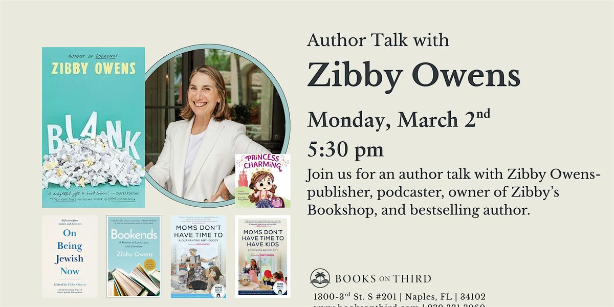 We are thrilled to welcome Zibby Owens for a special free author talk on Monday, March 2nd at 5:30 PM!